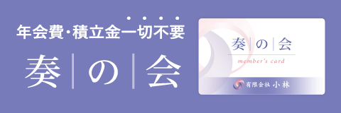 有限会社小林の会員制度「奏の会」は入会金のみで、年会費・積立金一切不要。葬儀費用の割引など、便利でお得な会員特典を多数ご用意しております。