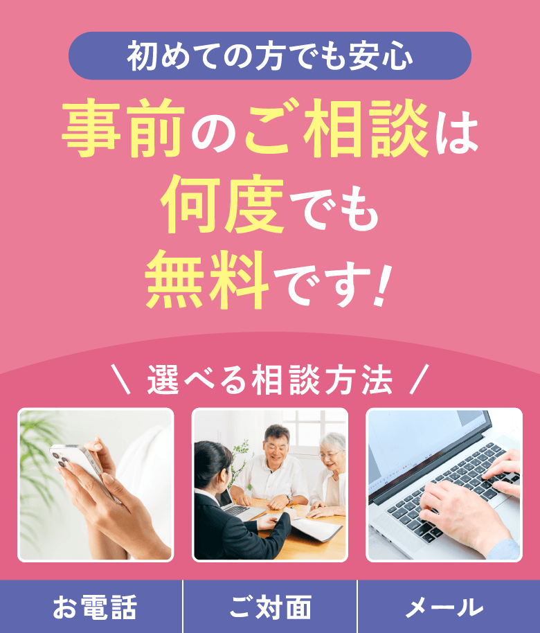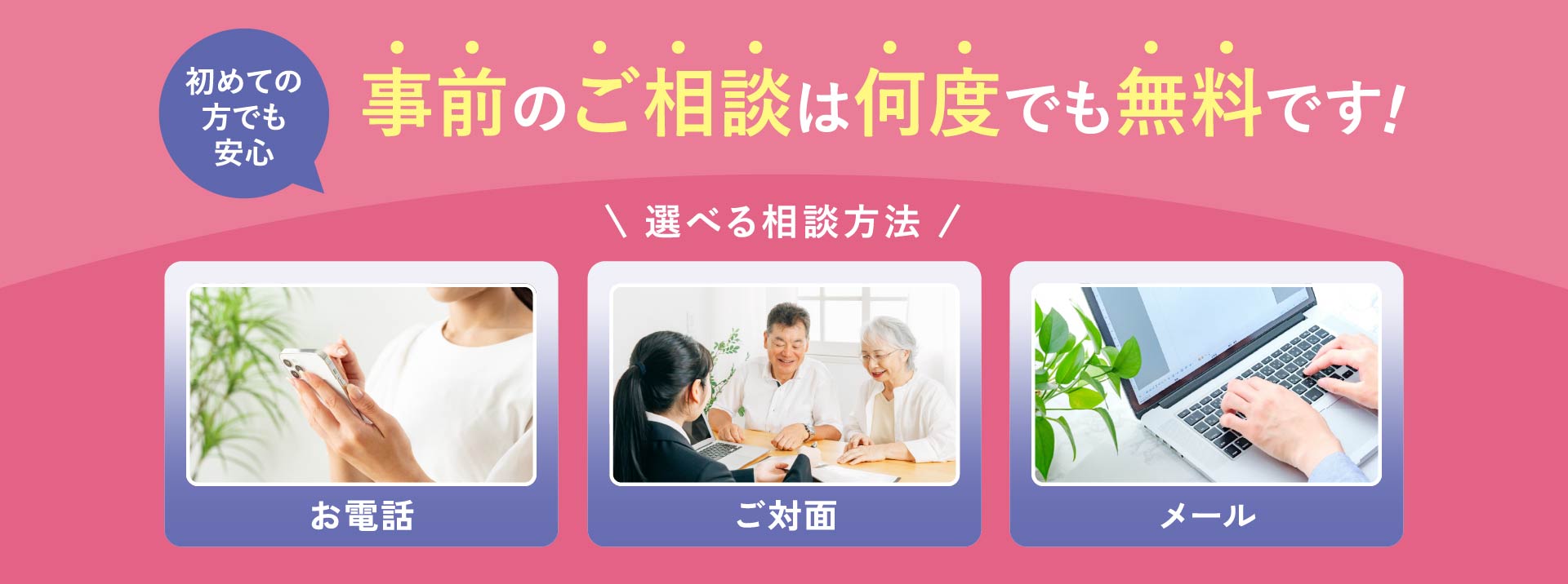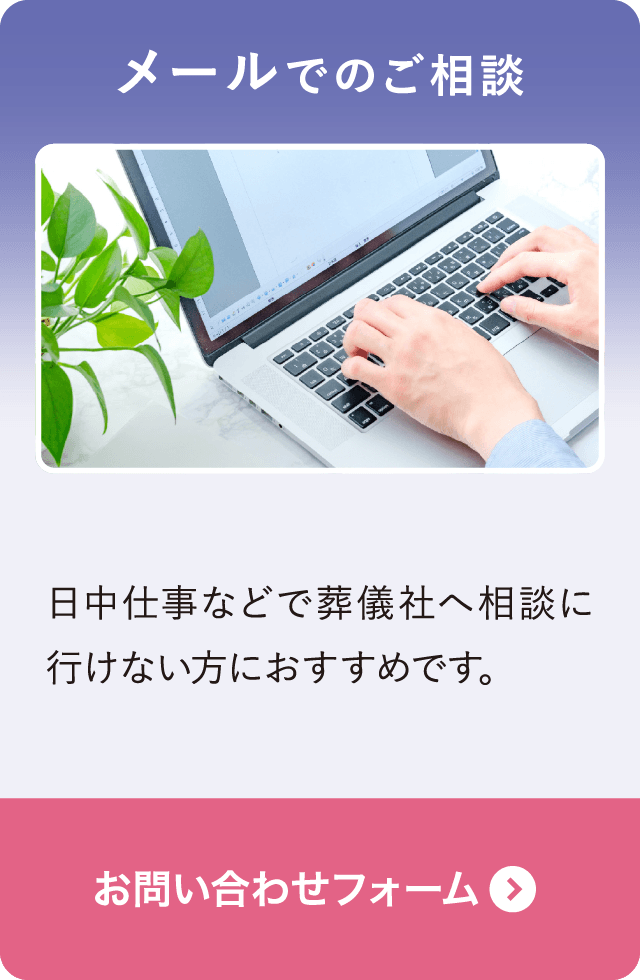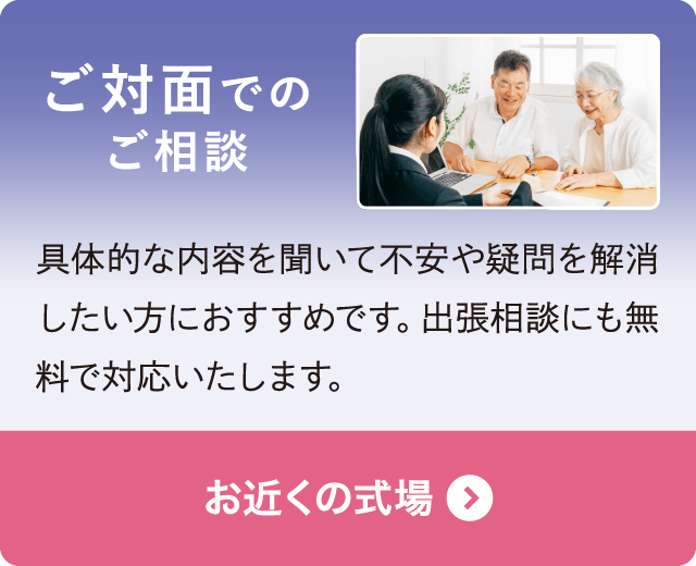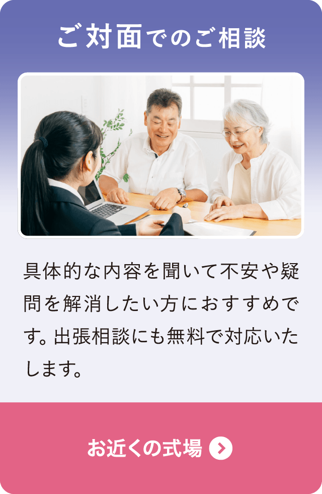 事前のご相談から葬儀後のアフターフォロー(各種手続きや法事·法要、位牌の準備、仏壇·墓石など)までトータルで幅広くサポートをいたします。