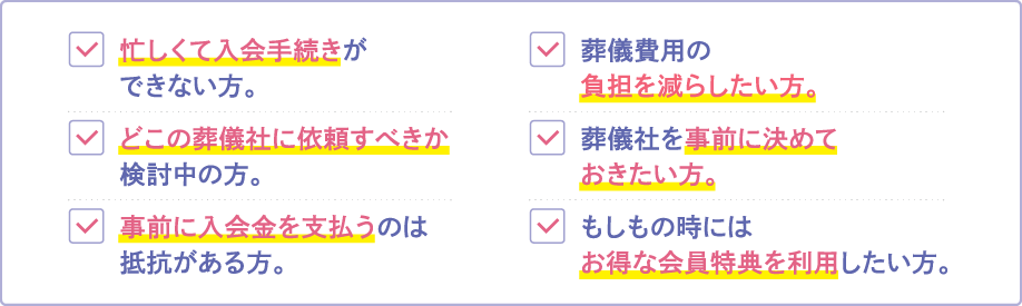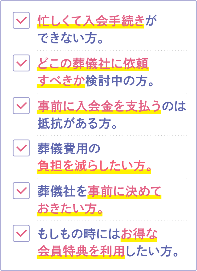 WEB得割は、葬儀社を迷われている方や、事前の入会金お支払いに